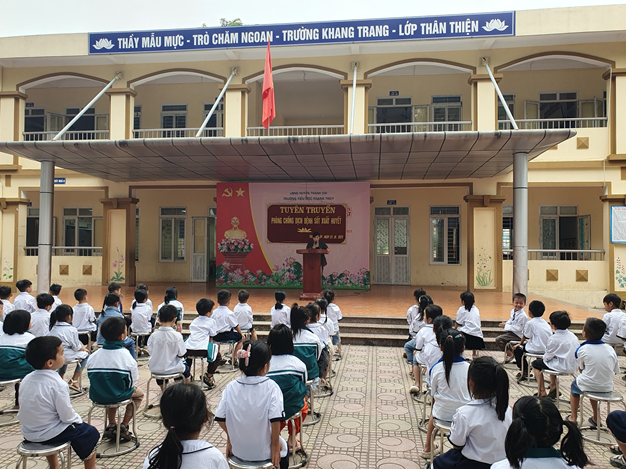 Hình ảnh Trường Tiểu học Thanh Thuỳ tổ chức tuyên truyền phòng sốt xuất huyết.